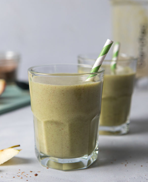 1. Quarter and core apple. Add all ingredients to blender. Blend until smooth. Enjoy.