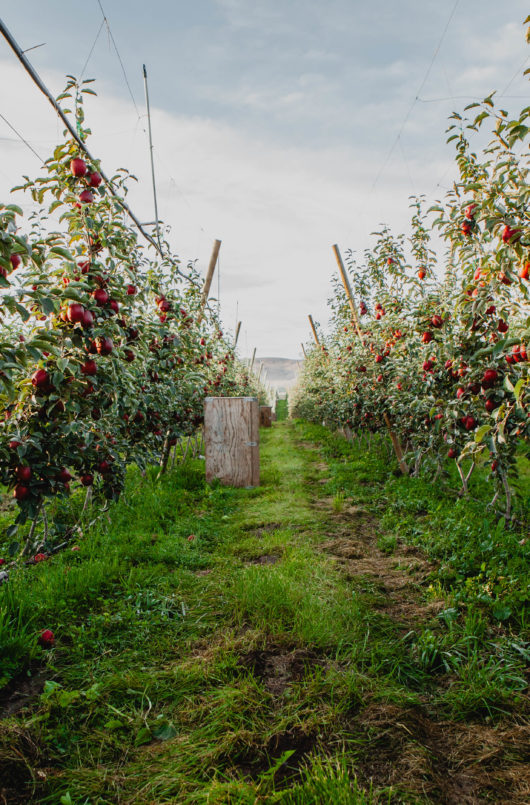 The best honeycrisp apples are yellow with a red blush covering the whole fruit